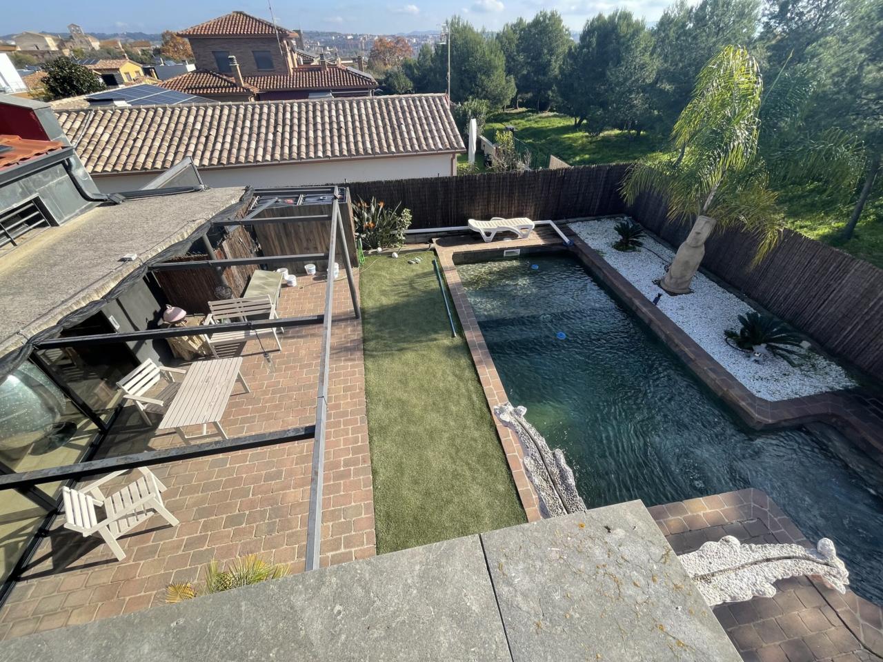 Superfície construïda 344 m², casa sup. solar 507 m², sup. útil 319 m², núm. hab. individ.: 1, habitacions dobles: 2, 1 bany/s, 2 lavabos, aire acondicionat (fred), antiguitat entre 10 i 20 anys, calefacció (gas natural), fusteria exterior (alumini), llar de foc, cuina, menjador, estat conservació: bon estat, garatge (mes de 2), gas, jardí (propi), núm. de plantes: 4, orientació est, piscina (pròpia), assolellat, terrassa, tipus de sòl: gres, urbanitzat, vidres dobles, pati.